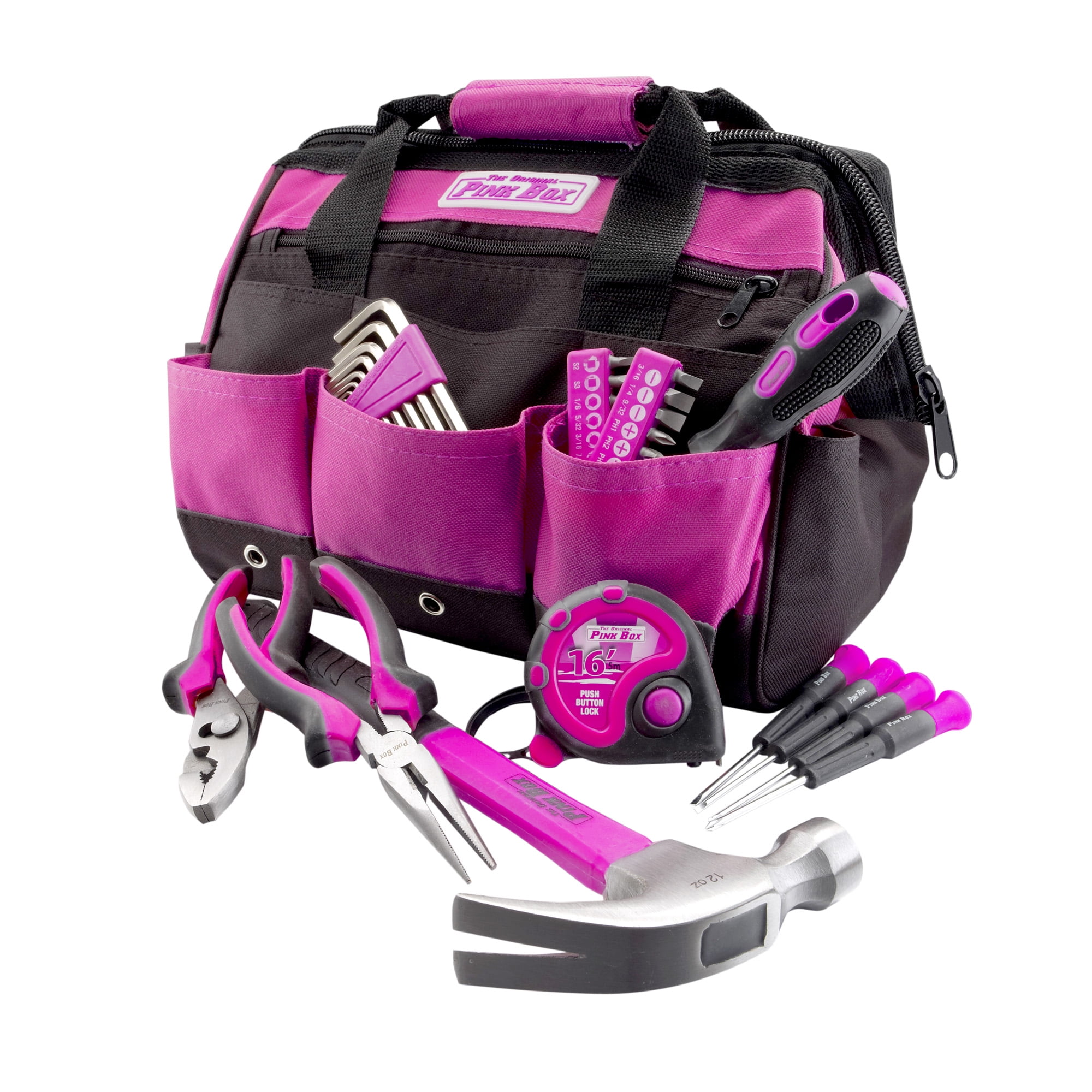 The Original Pink Box Pb30tbk 30 Piece Home Tool Set W 12 Inch Tool Bag Pink Walmart Com